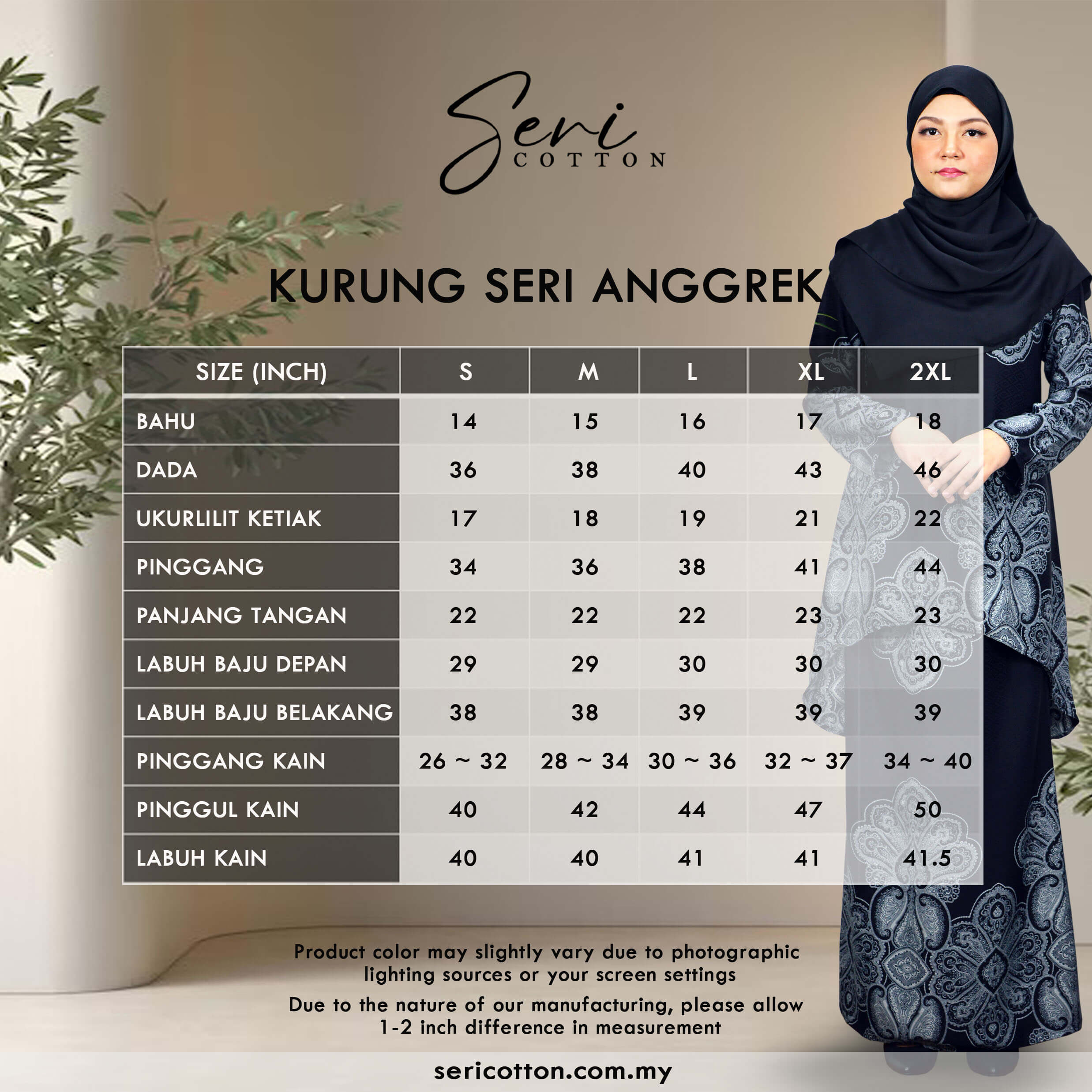 *Nota : Warna sebenar mungkin berbeza sebanyak 10% kerana pencahayaan dan resolusi skrin